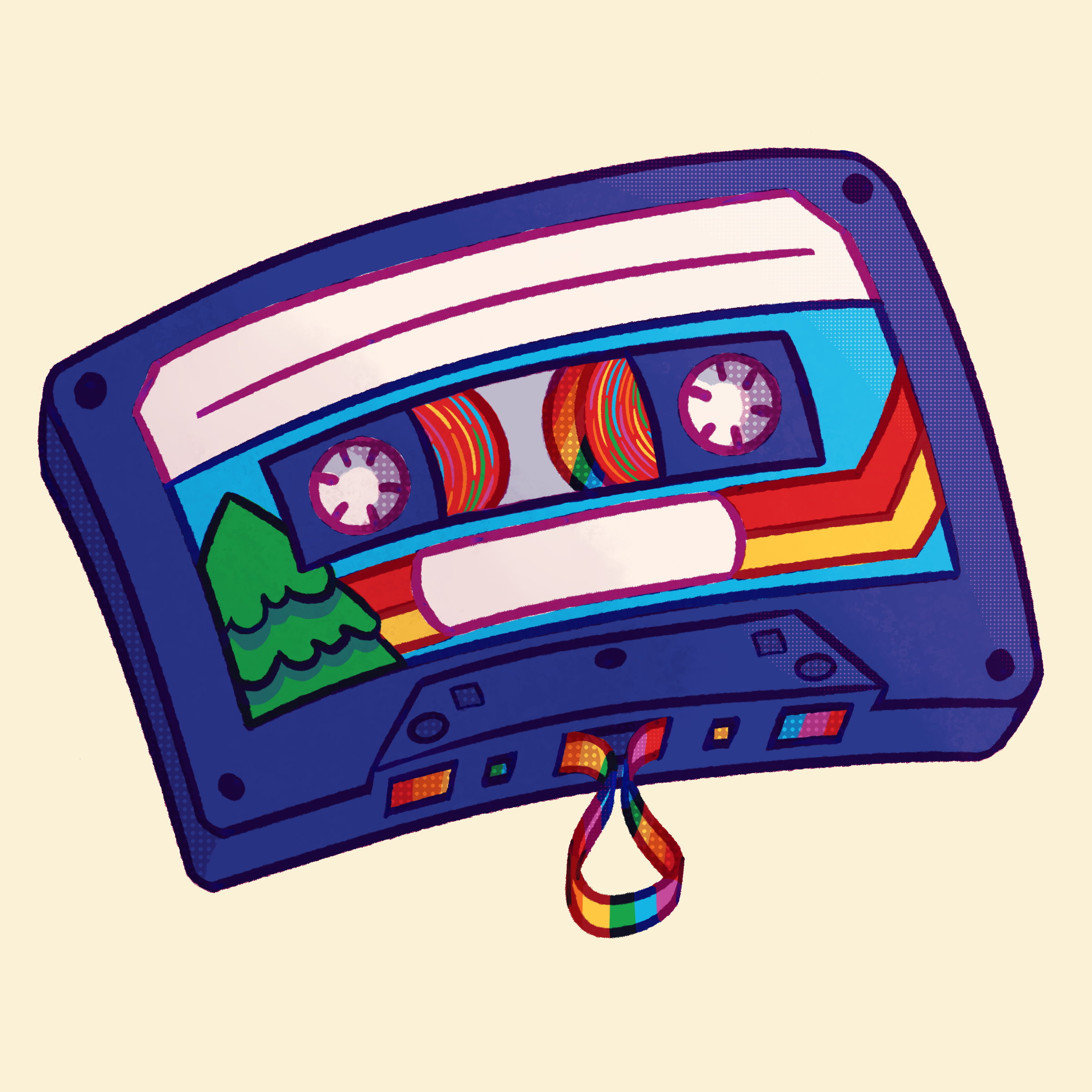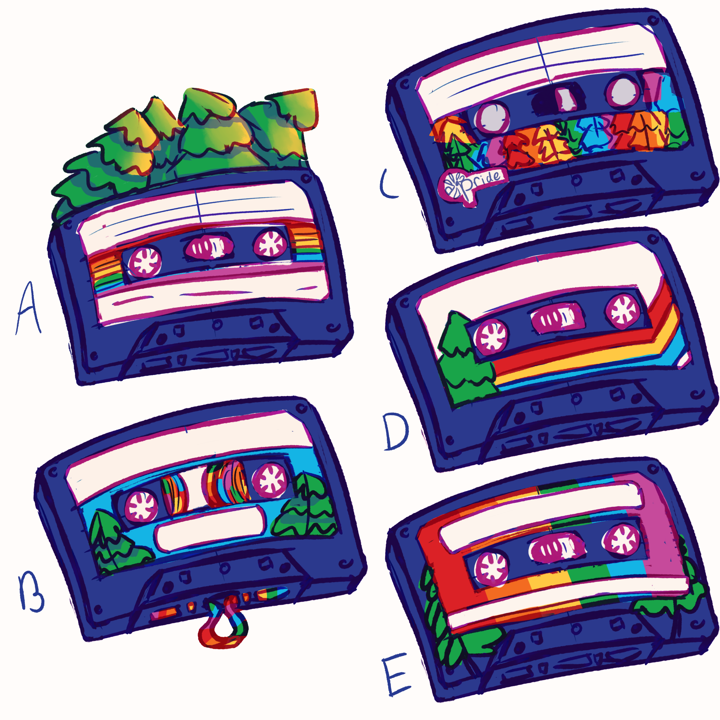 The theme for 2022’s Kitsap Pride was retro 80’s and they wanted a logo and merchandise of a cassette tape. The also requested that the design had a Pacific North West feel as well.
